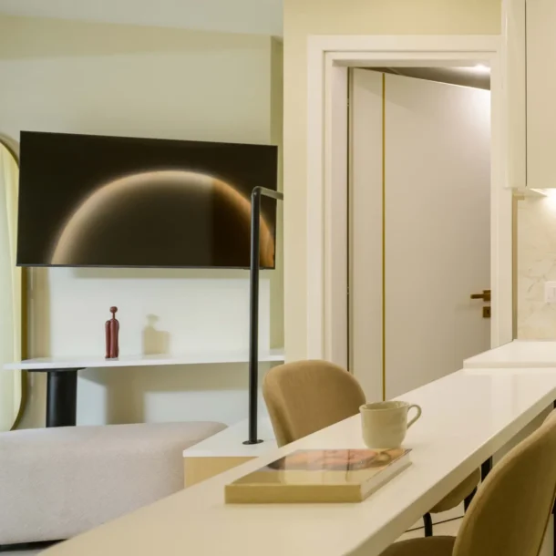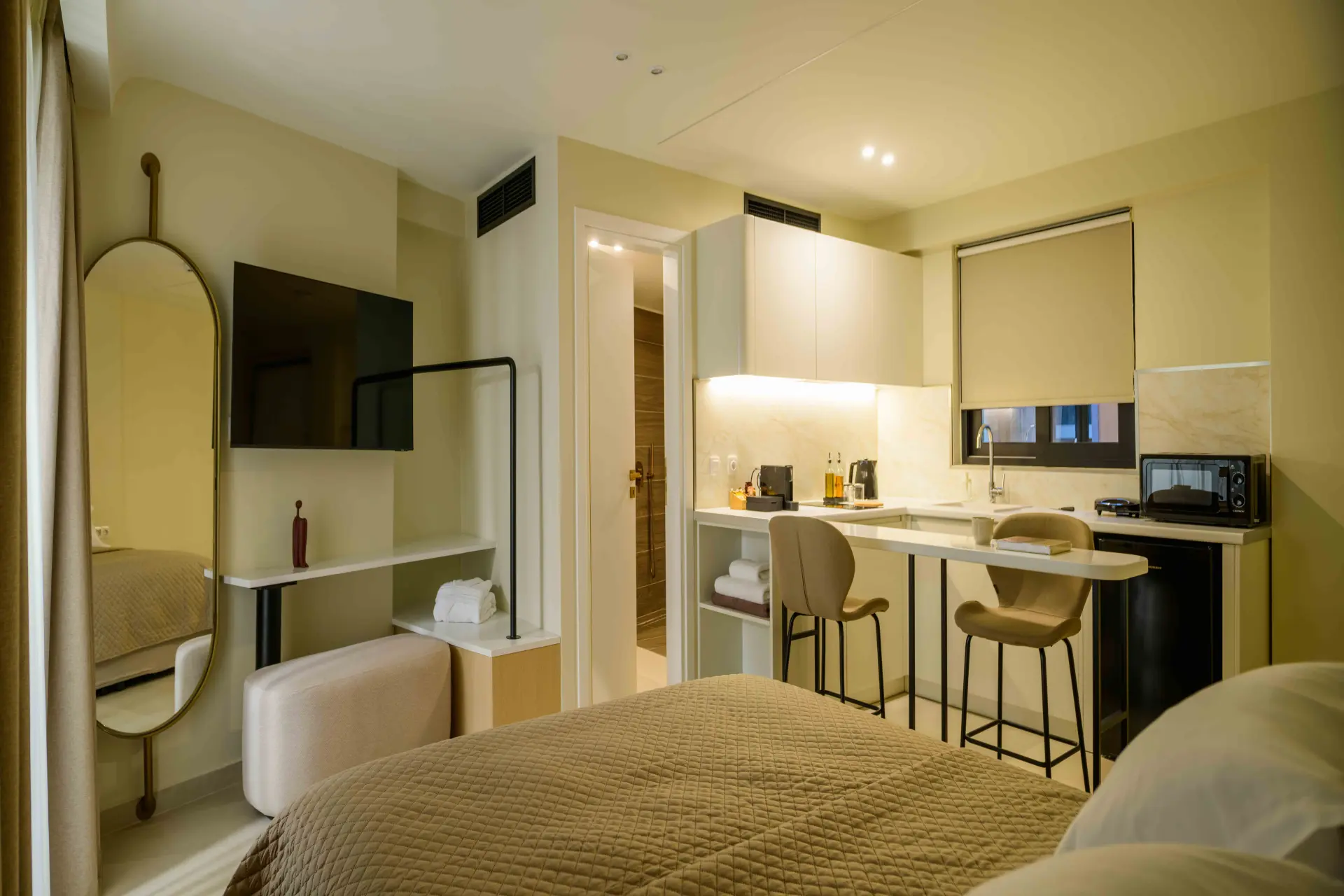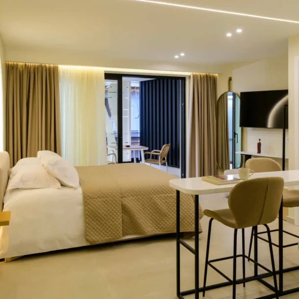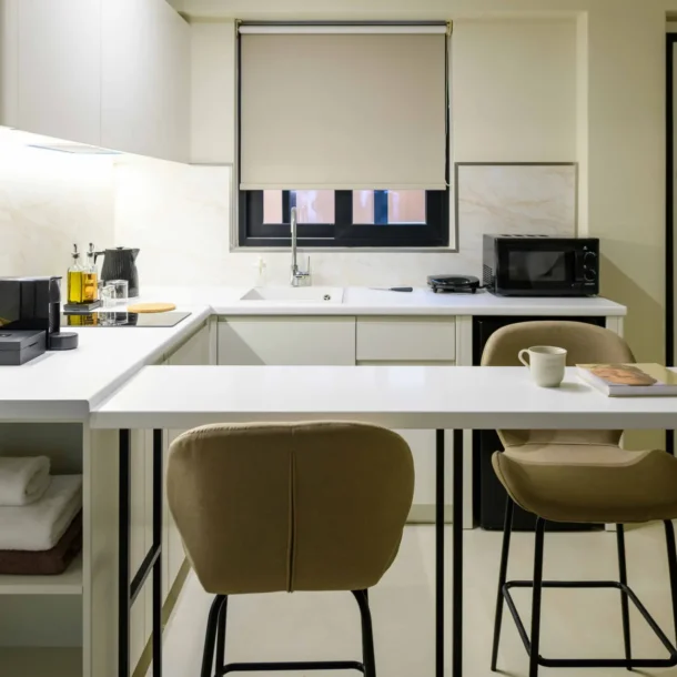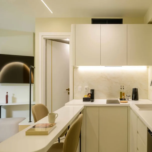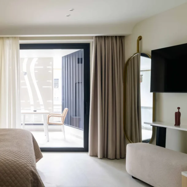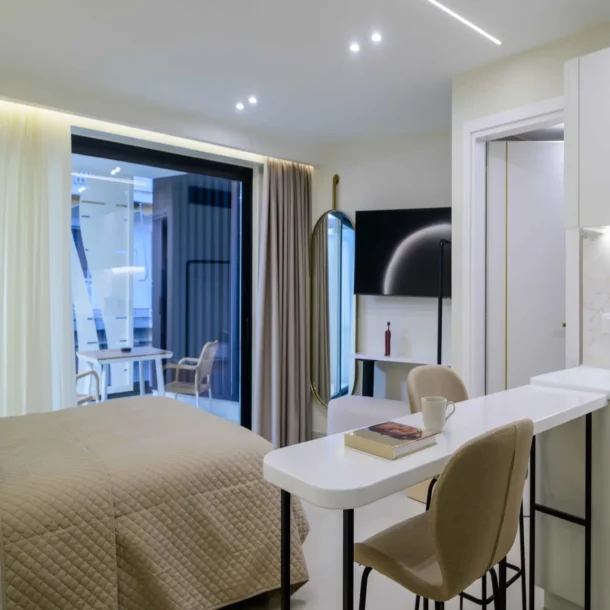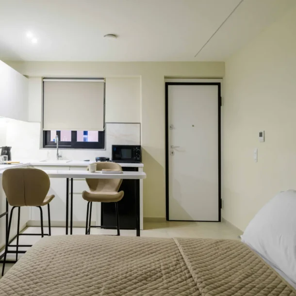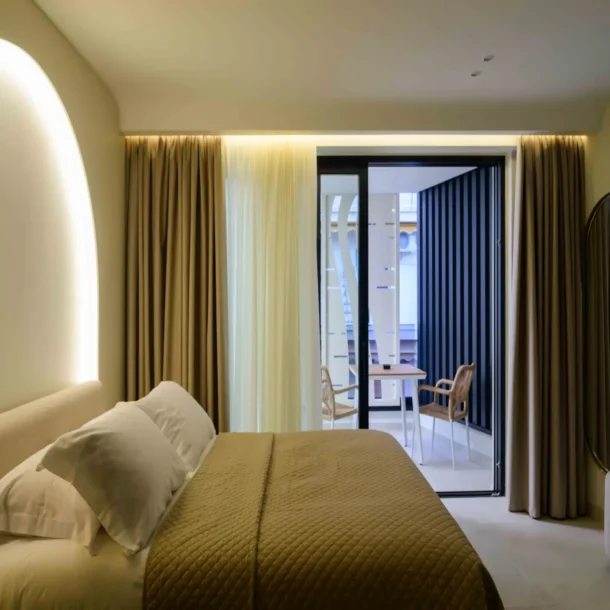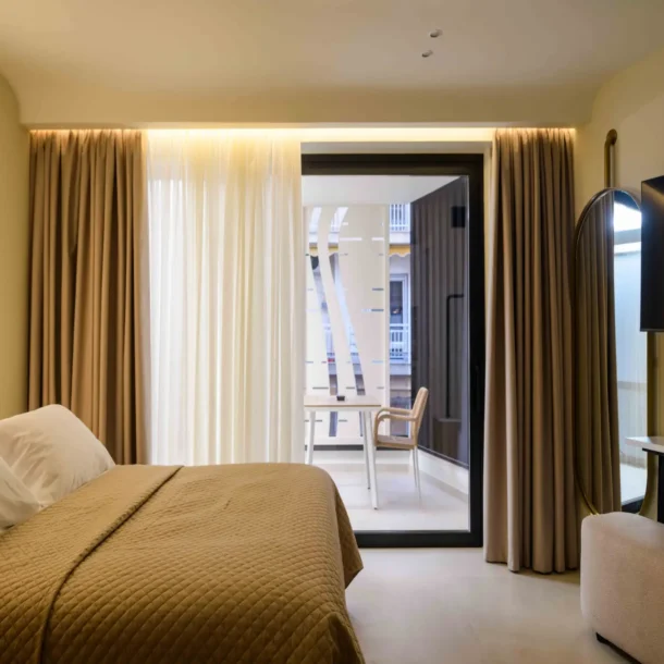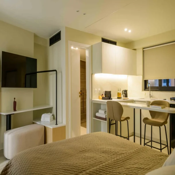 Ideal for couples or solo travelers, the Superior Double Room offers a calm and well-balanced space in the center of Athens. Featuring a private balcony and a fully equipped kitchenette, it’s designed for comfort, simplicity, and ease throughout your stay.