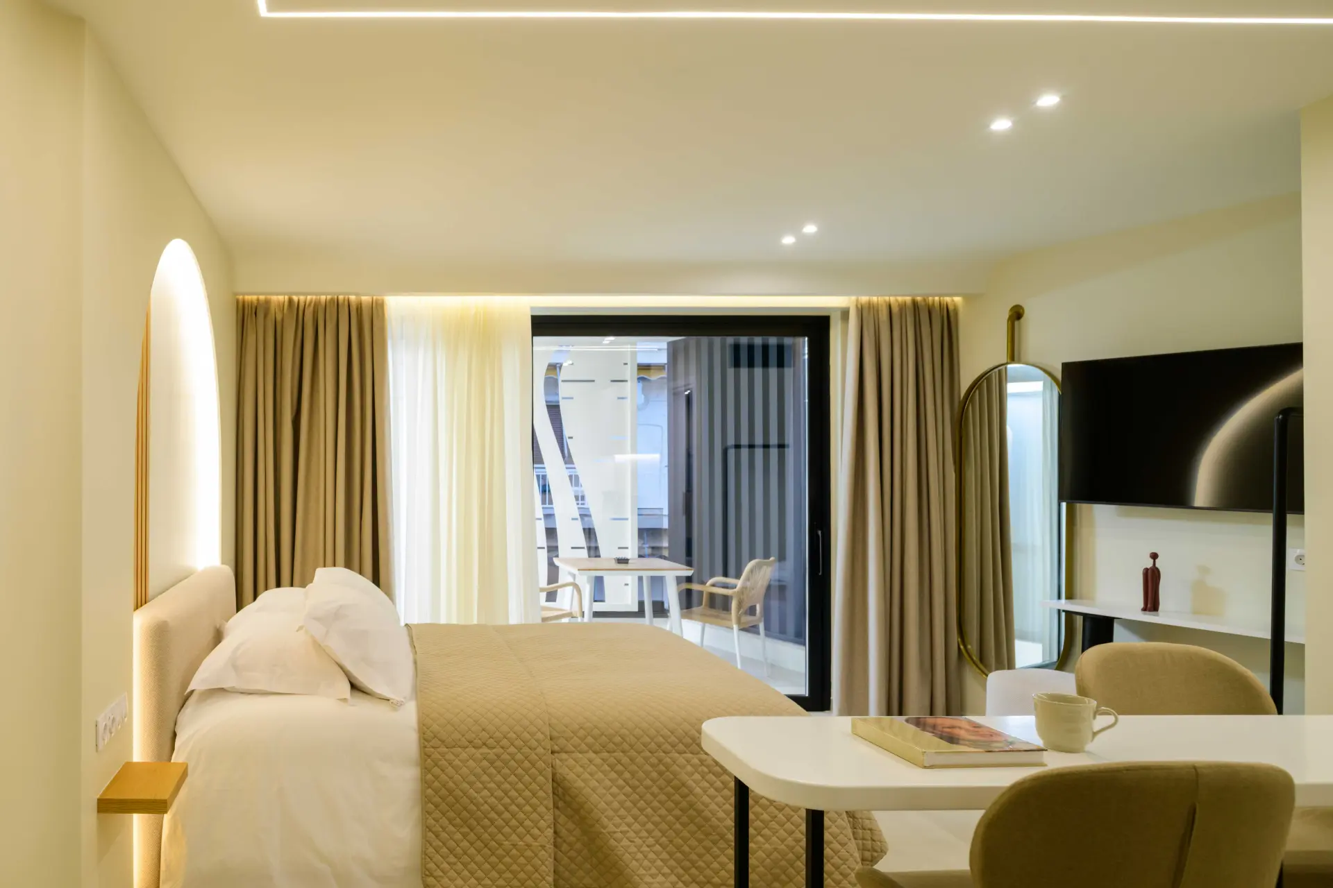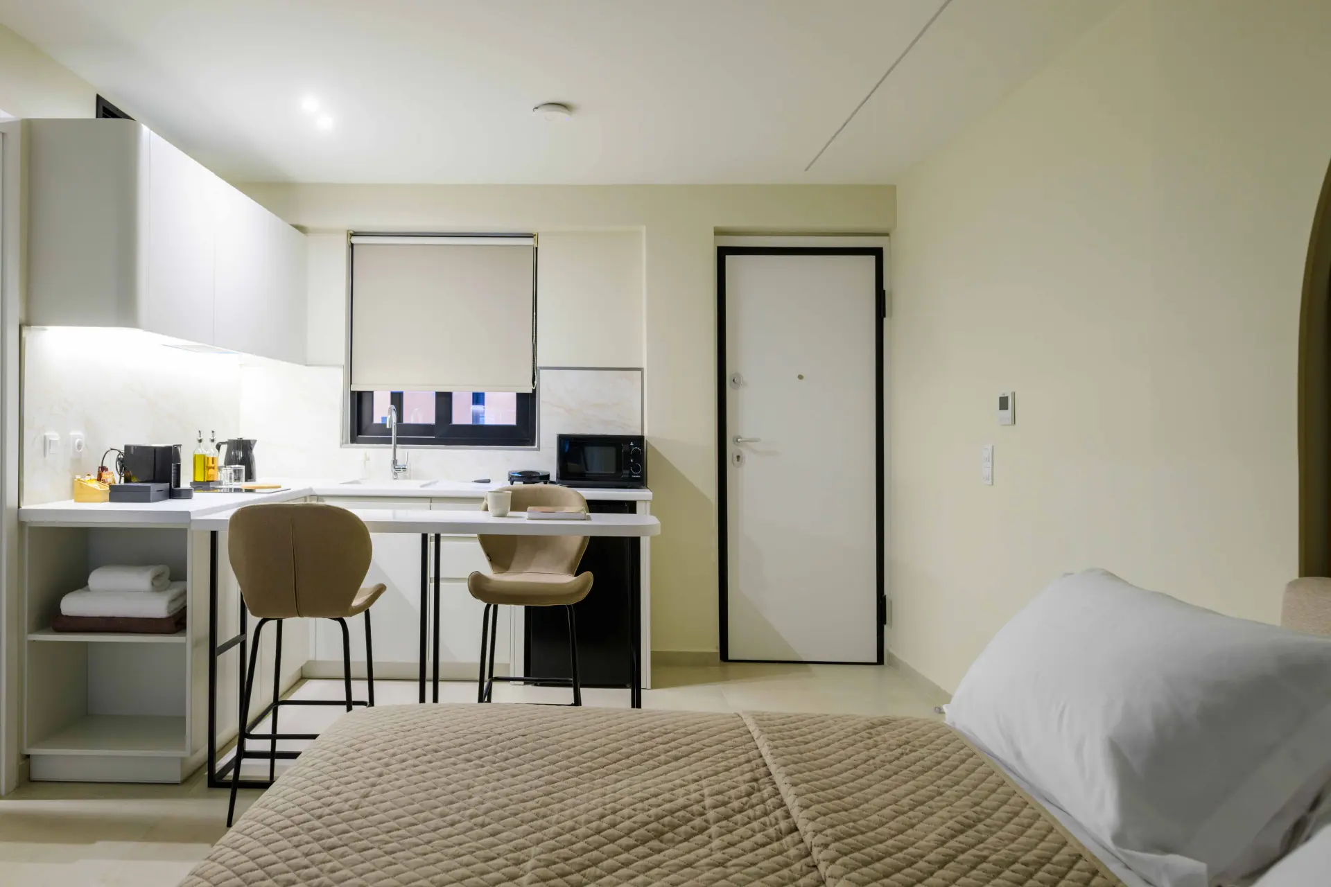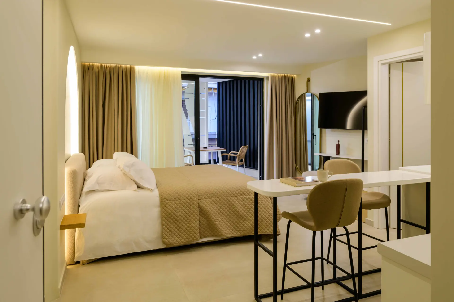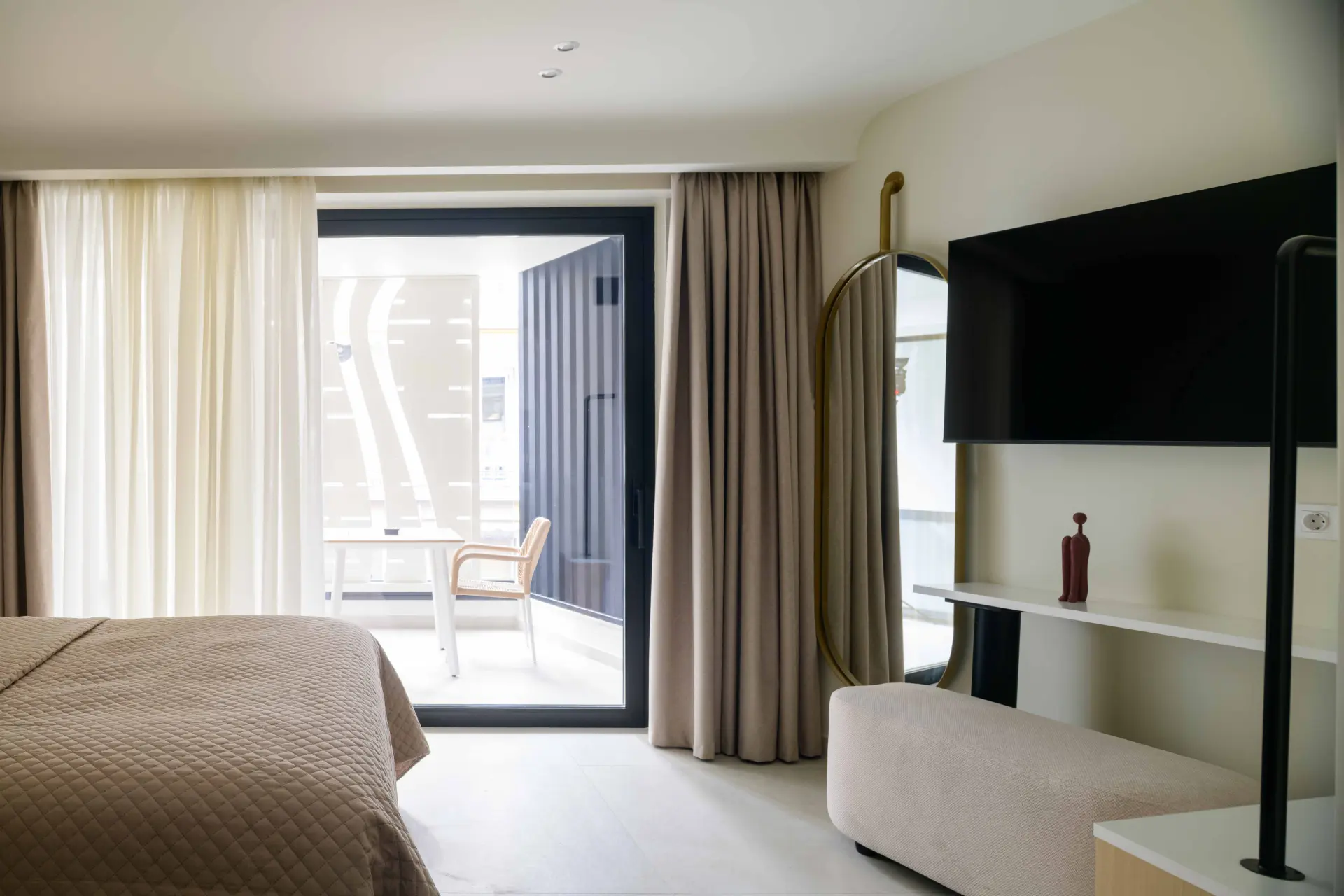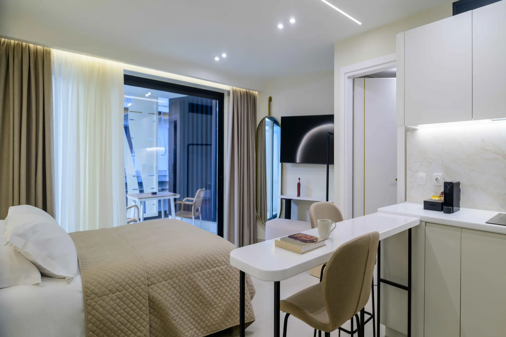 Ideal for couples or solo travelers, the Superior Double Room offers a calm and well-balanced space in the center of Athens. Featuring a private balcony and a fully equipped kitchenette, it’s designed for comfort, simplicity, and ease throughout your stay.